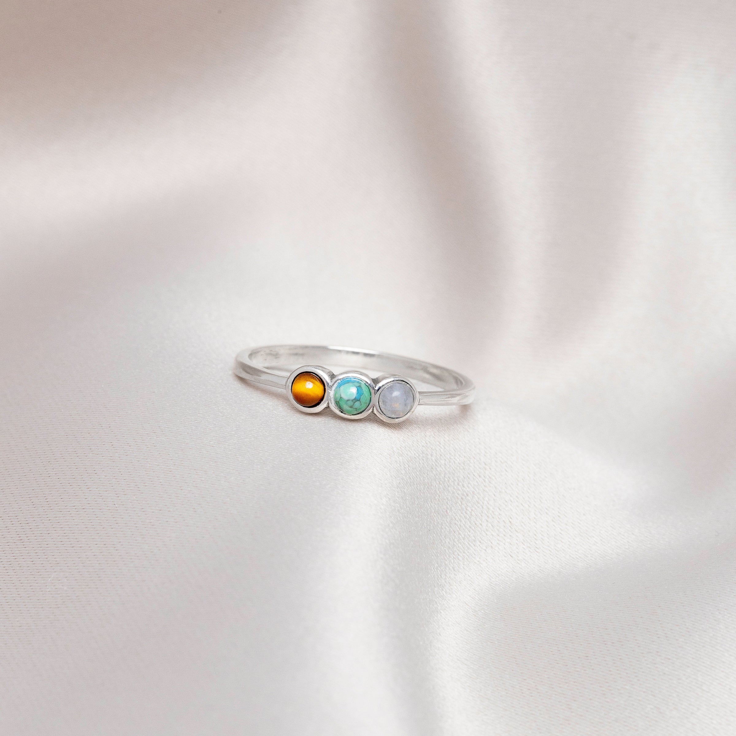 Porte l’équilibre sacré des éléments avec La Trinitée, une bague en argent sterling 925 sertie de trois pierres naturelles puissantes : la pierre de lune (intuition), la turquoise (harmonie) et l’œil de tigre (protection). Chaque pierre incarne une force unique pour une connexion profonde à la nature.