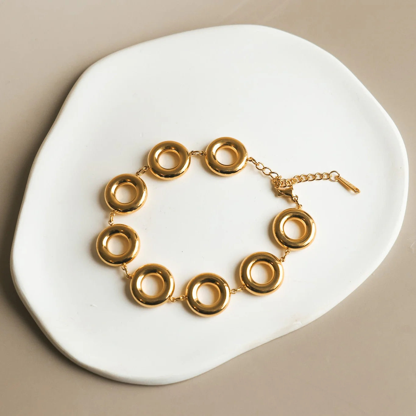 Bracelet composé de grosses mailles rondes. Parfait pour un look rétro ou plus bold.