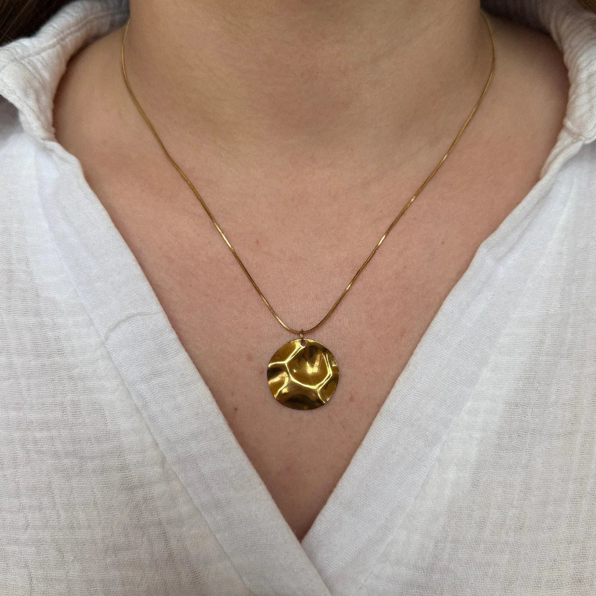 Sa surface délicatement martelée capte la lumière sous tous les angles — la pièce statement parfaite, à la fois audacieuse et naturellement raffinée.