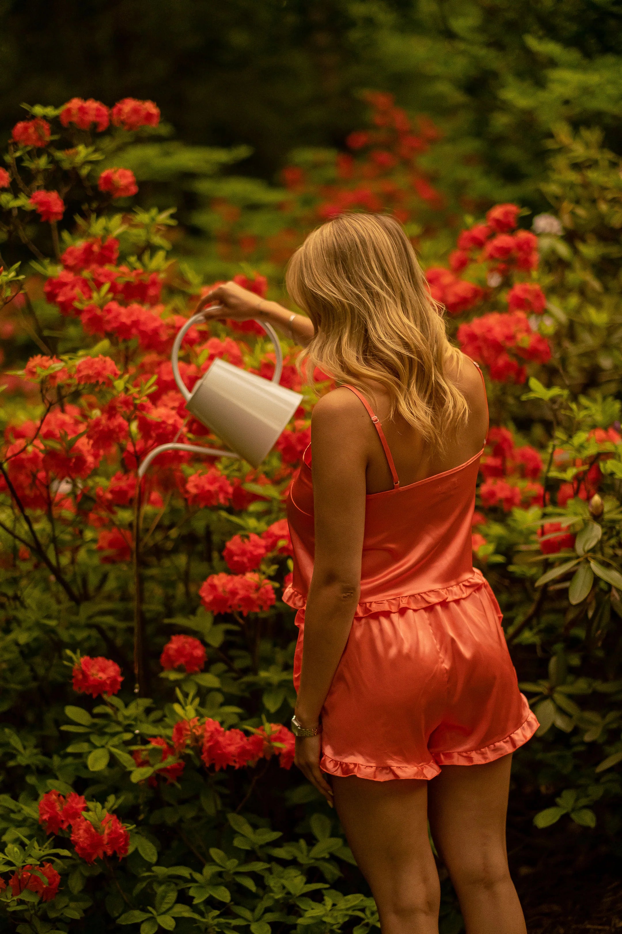 Confectionné dans un satin doux et fluide, ce pyjama deux pièces dans une teinte corail vibrante est un véritable rayon de soleil. Le short à taille élastique, orné de délicats froufrous, épouse confortablement les formes. Léger, flatteur et joyeux, c’est le compagnon parfait pour relaxer dans le jardin, bruncher au lit ou rêver éveillée.