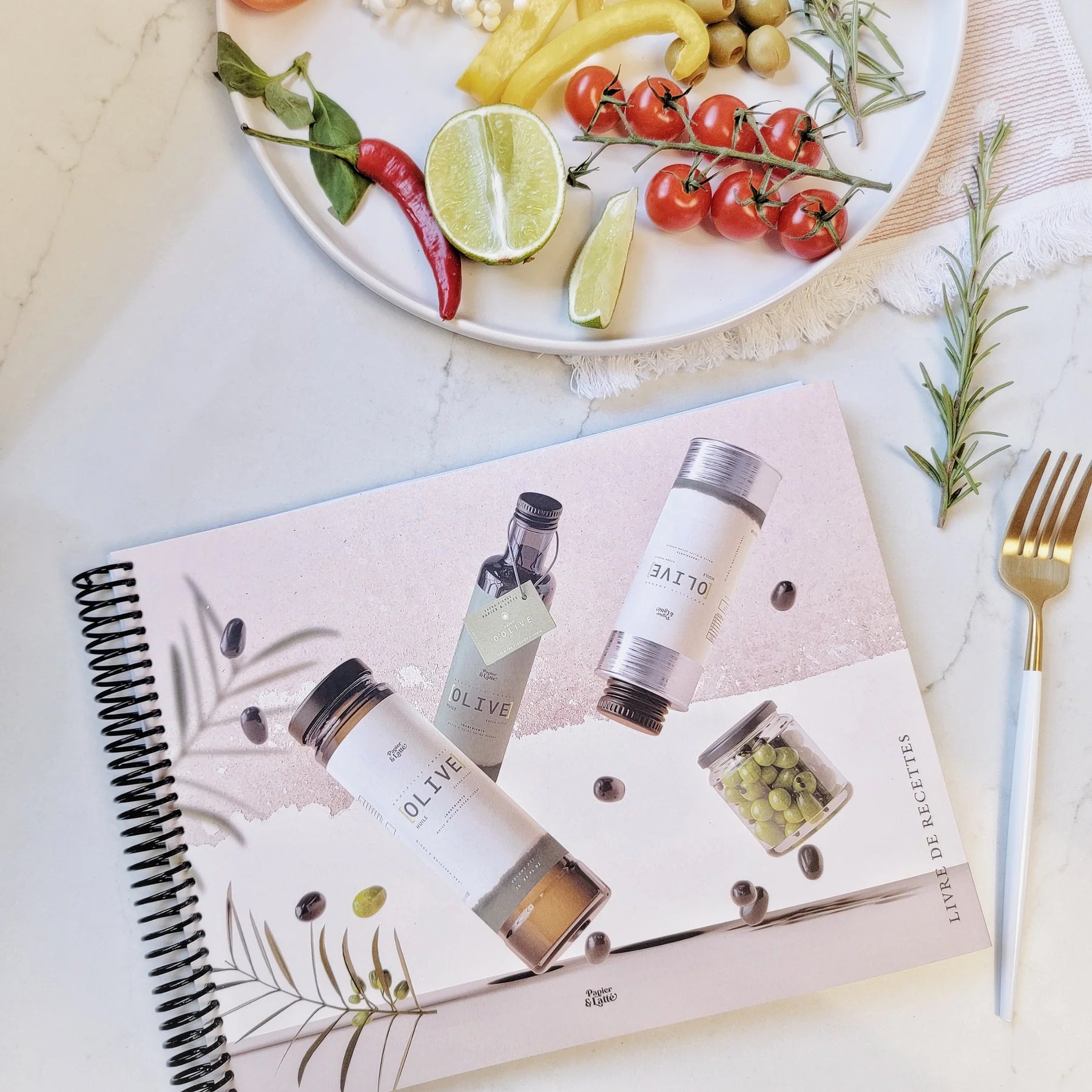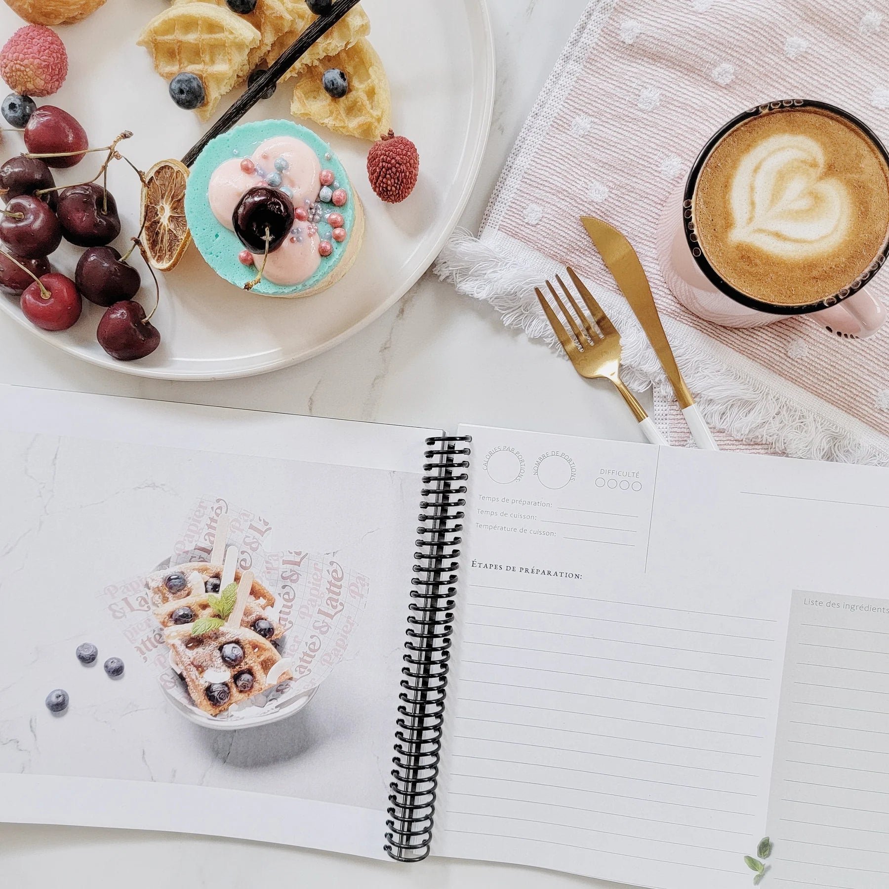 - À l'intérieur, un papier recyclé épais et de qualité pouvant accueillir 50 de vos meilleures recettes.