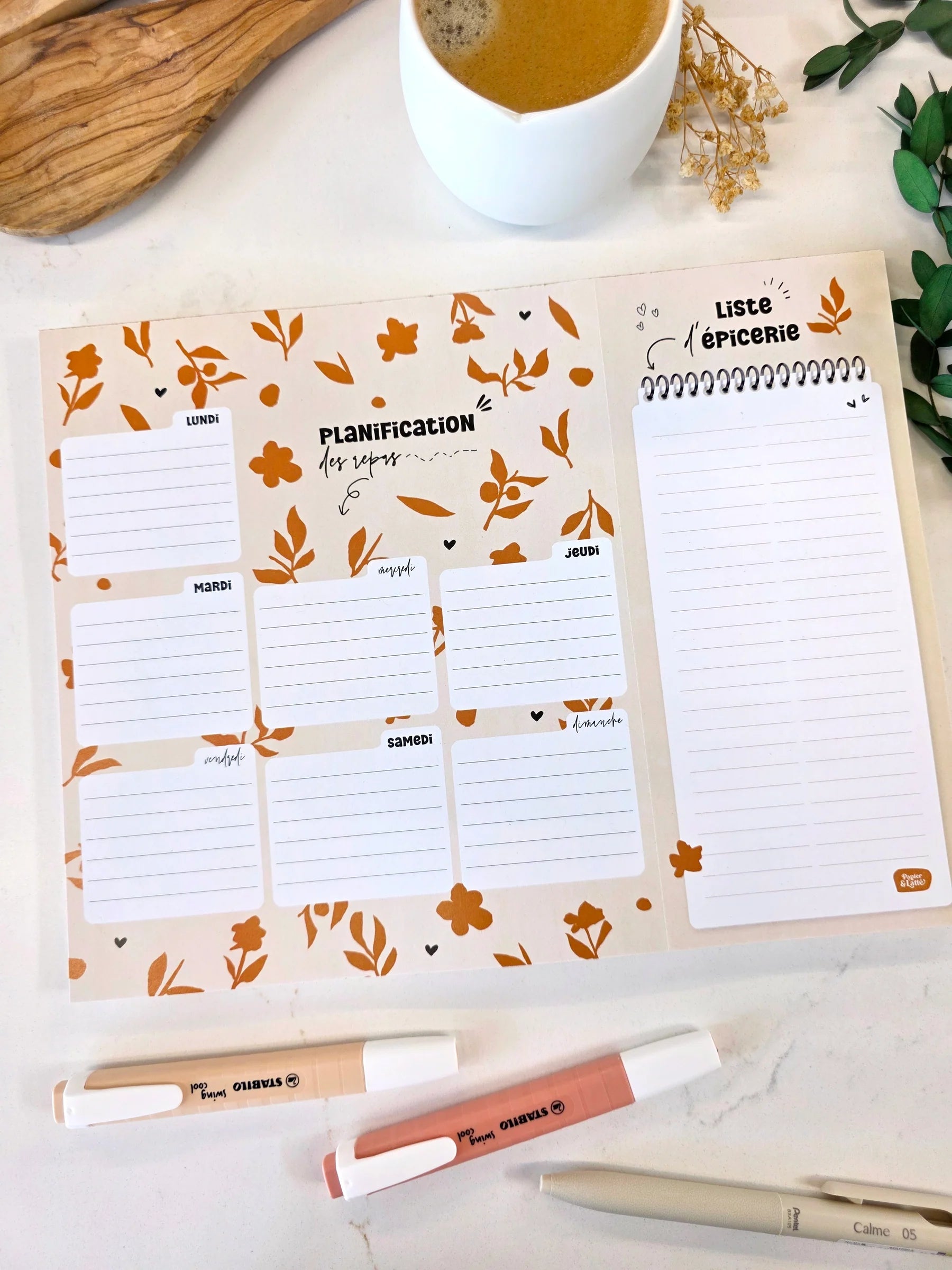 Ce planificateur de repas viendra simplifier cette tâche. Et savez-vous quoi? La liste d'épicerie est pré-perforée et donc se détache facilement. (Avouez que c'est pratique ça)