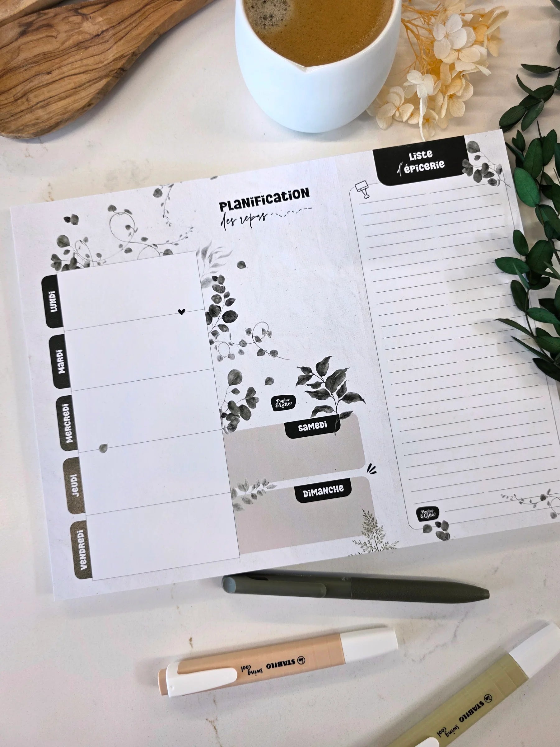 Ce planificateur de repas viendra simplifier cette tâche. Et savez-vous quoi? La liste d'épicerie est pré-perforée et donc se détache facilement. (Avouez que c'est pratique ça)